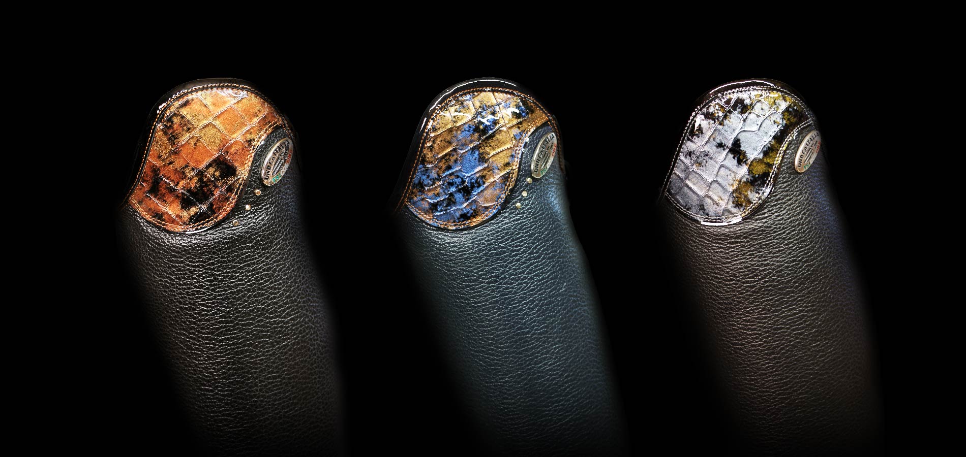 DeNiro Bellini Dressage Vitello Black Sfumato Blue + Curved top strap Rondine
