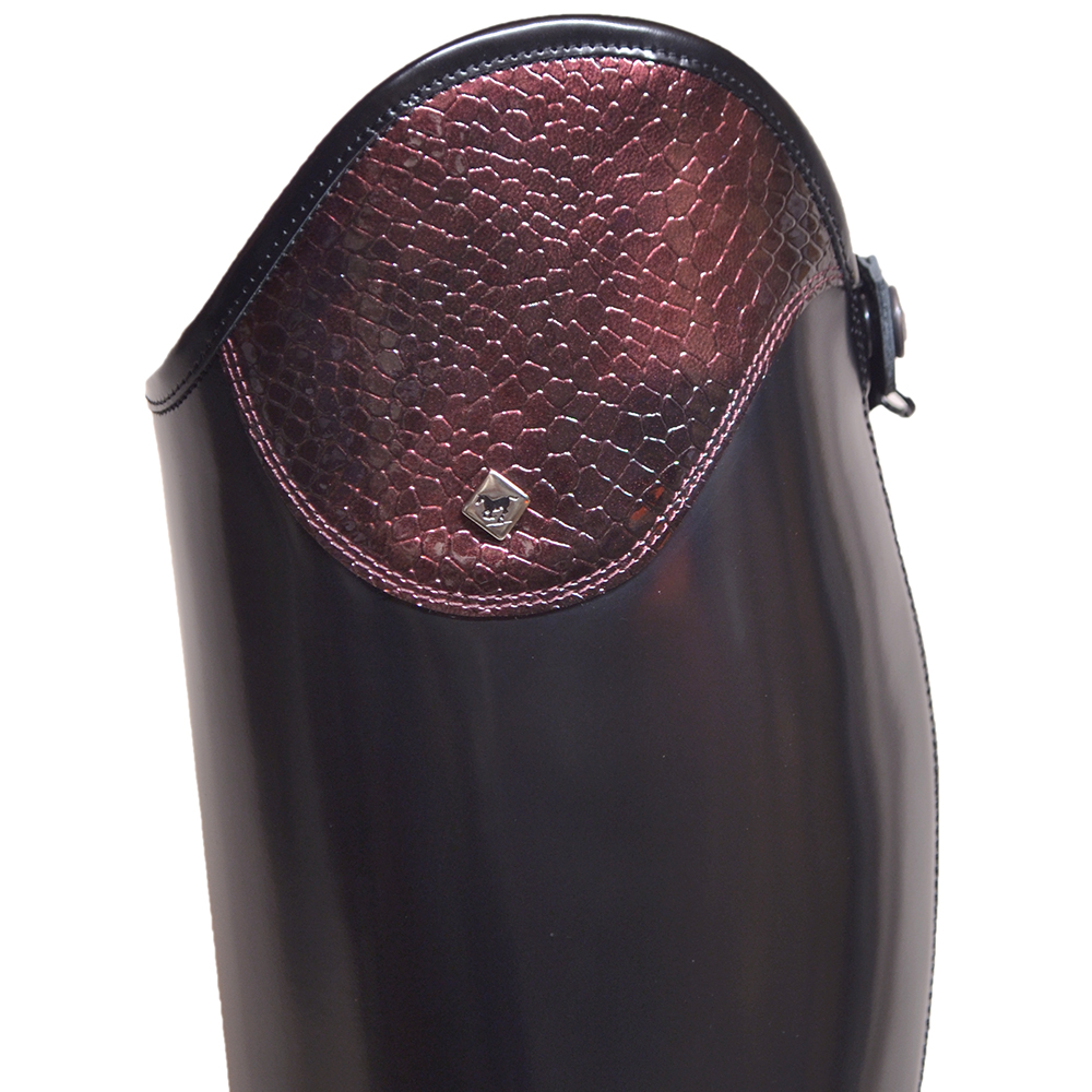 This Particular De Niro Salento Boot features a Brushed Black leg with vitello black foot and inside leg. Top leather used is in Cocco Bordo. This design features black stitching and black sole. It has a subtle elastic panel down the back next to the zip. This aids comfort and gives you flexibility with the fit. All boots come with a Vibram Sole and the boots are available with or without laces. The Salento Boot is available in multiple colours. You can customise the top of the boots with leather tops and add any additional extras on the boot builder.