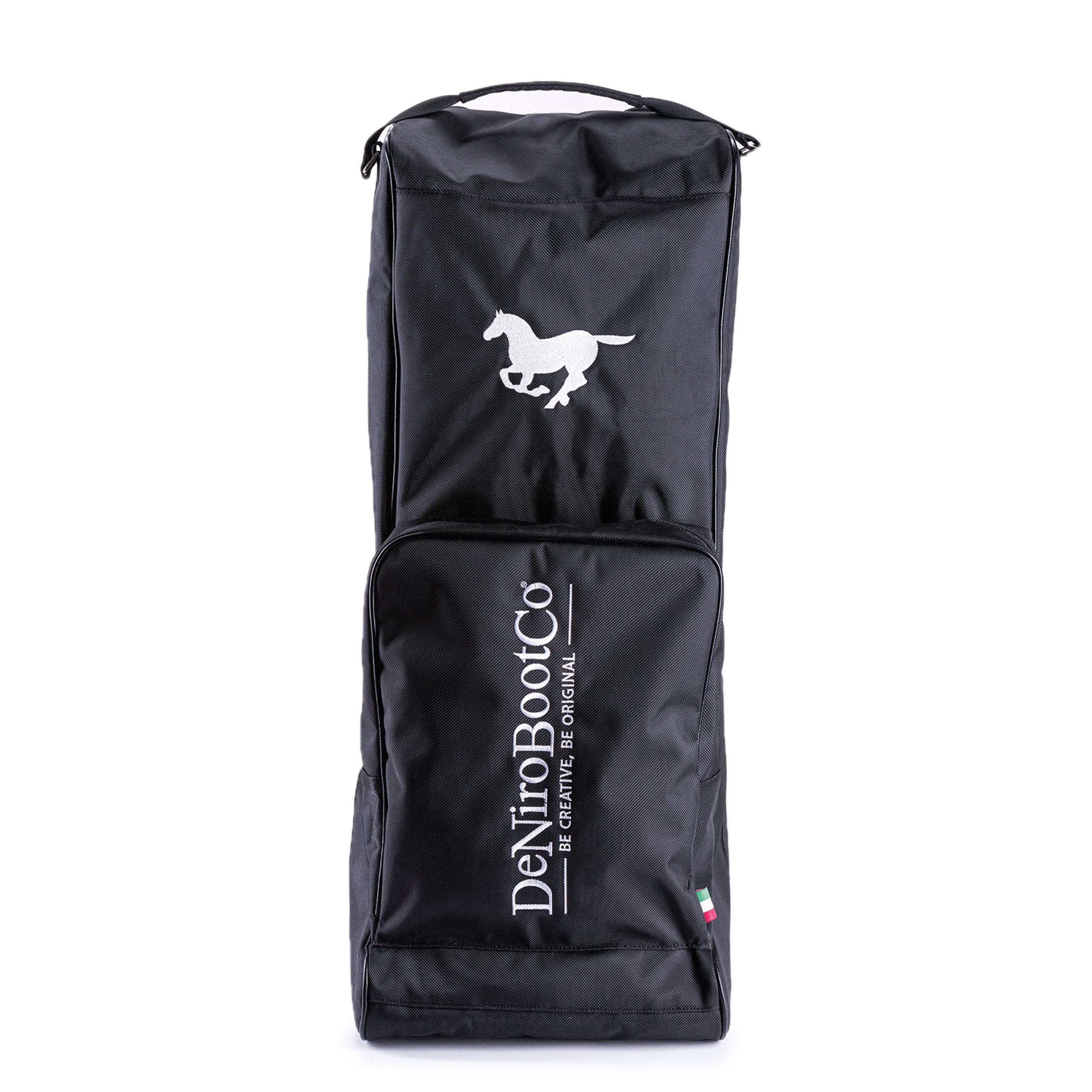 The De Niro Boot Bag offers stylish protection and comfort for your riding boots. Crafted from durable, water-repellent, and breathable materials, this bag ensures your boots stay clean and safe in any condition. The double zip opening provides easy access, while the fleece lining is ideal for both brushed and patent boots. A soft divider keeps each boot protected from scratches. Featuring an adjustable handle for convenient carrying and a deep outer pocket to store all your equestrian essentials, the De Niro Boot Bag is the perfect storage solution for riders who value both function and elegance.